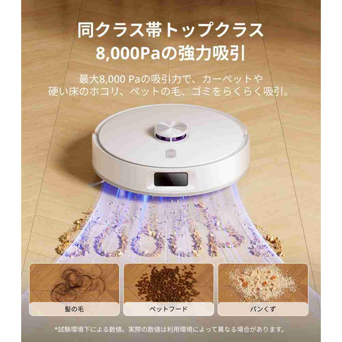 同クラス帯トップクラスの吸引能力で、ほこりやゴミはもちろんのこと、食べかすなどの日常のゴミもしっかりと除去します。