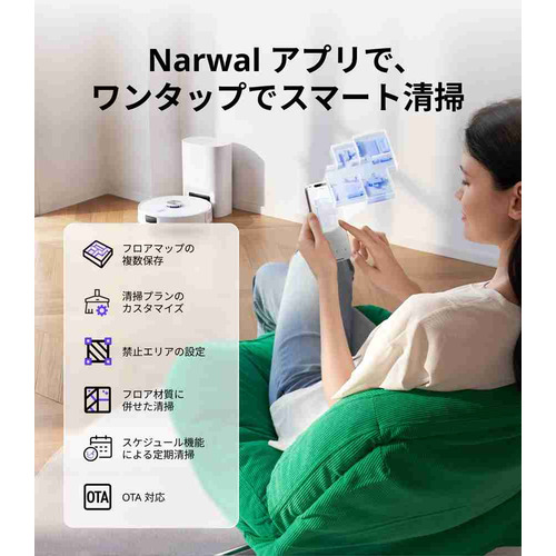 マップ・エリア管理、様々な清掃モード、スケジュール設定等を【Narwal Freoアプリ】を通してご自宅の清掃を最適管理します。