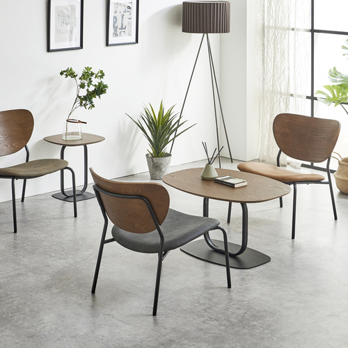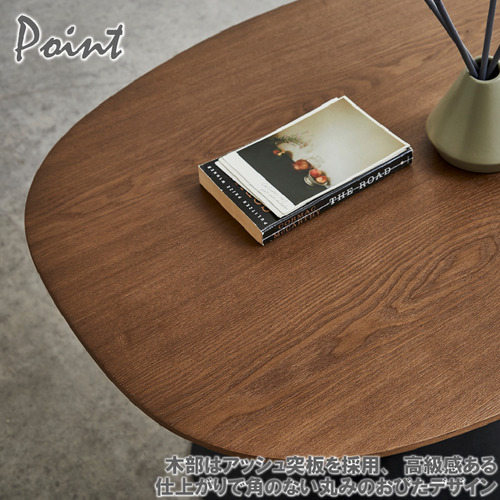 シンプルかつモダンなフォルムのセンターテーブル。●木部は、木目のキレイなアッシュ突板を採用。●脚はブラックアイアンを採用、モダンでシックな空間を演出。