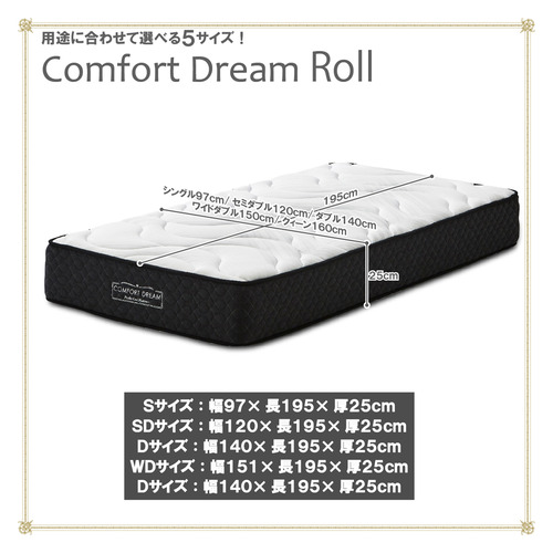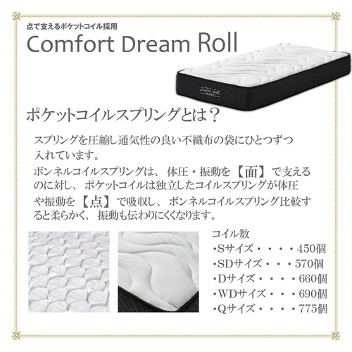[ワイドダブル]後藤家具物産 コンフォートドリーム ロール ポケットコイルマットレス 厚25cm ホワイト&ブラック PIM-CFDM-ROLL-WD