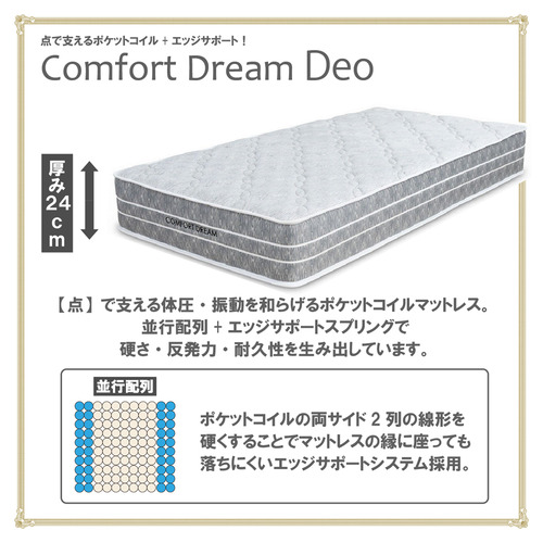 [クイーン]後藤家具物産 コンフォートドリーム デオ ポケットコイルマットレス 厚み24cm グレー PIM-CFDM-Deo-Q