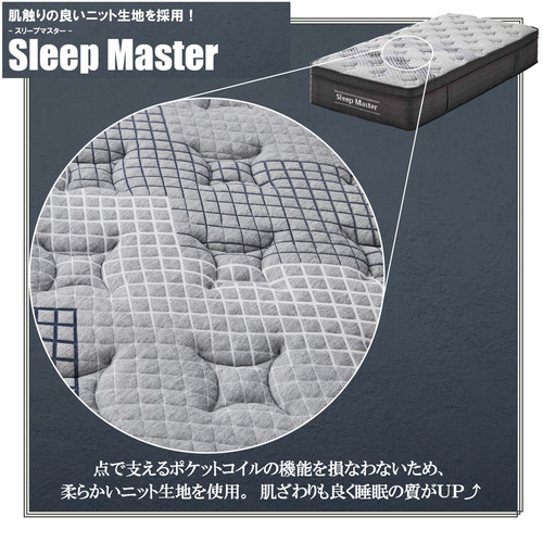 ●極厚でボリュームのあるホテルの様な贅沢気分を味わえる極厚ポケットコイルマットレス。●表面は、柔らかな風合いと伸縮性・吸収性に優れたニット生地を使用。●独立したポケットコイルスプリングが体圧や振動を「点」で吸収し身体にフィット。