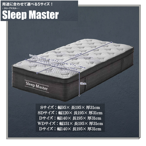 [ワイドダブル]後藤家具物産 スリープマスター ポケットコイルマットレス 極厚 厚み31cm グレー PIM-SM-WD