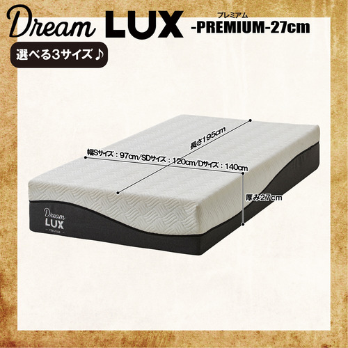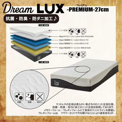 [セミダブル]後藤家具物産 ドリームラックス プレミアム ノンコイルマットレス 厚み27cm ホワイト&グレー PIM-DLUX-PREM-SD