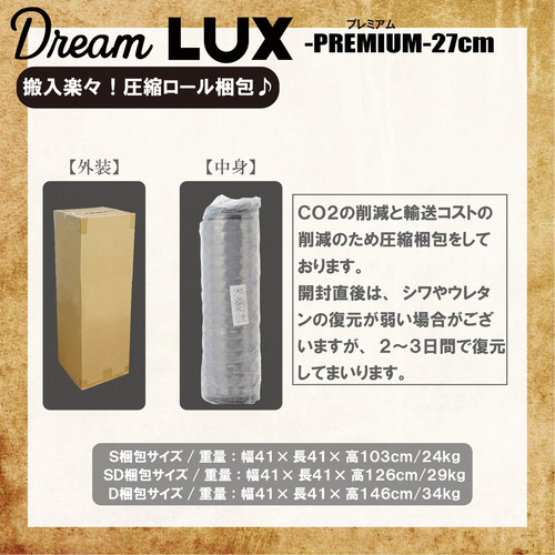 ●物流コスト削減のため、圧縮ロール式梱包となっております。開封直後は、シワやウレタンの復元が弱い場合がございますが、2〜3日間で復元してまいります。