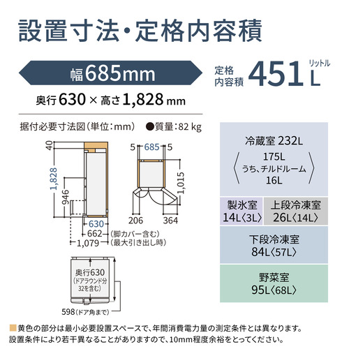 定格内容積(※新JIS測定・計算方式 (JIS C 9801-3: 2015) に基づく表示※):451L