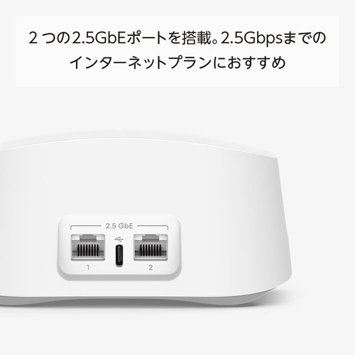2つの自動検知2.5GbEポート、Wi-Fi 7、Qualcommテクノロジーにより、最大2.5Gbpsのインターネットプランに対応。最大速度は、有線で最大2.3Gbps、無線で最大1.8Gbps。