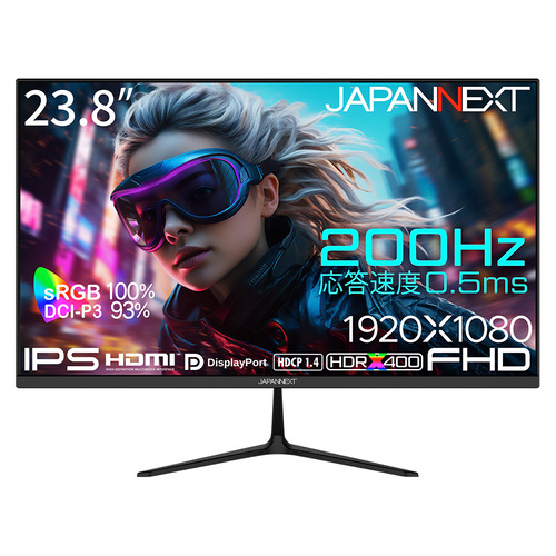 JAPANNEXT 23.8インチ IPSパネル搭載 200Hz/0.5ms(MPRT)対応 フルHD(1920x1080)解像度 ゲーミングモニター JN-IPS238G200FY HDMI DisplayPort sRGB:100% DCI-P3:93% HDR400相当 PS5 フルHD:120Hz 【2年保証】