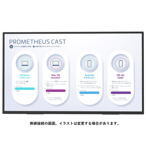 注意事項:無線接続できないスマホがあります。画面の縦横自動回転は無線時(スマホ可能。PCでは不可)、有線時(スマホ不可、PC不可)、VESA穴使用時はネジ規格 M4ネジ5mm(VESA用ネジは付属しません)、typeC接続の際はデバイス側がオルタネートモード機である必要があります。スマートフォン、タブレットでの無線接続では使用できない機種があります。Googlepixelは使用不可です。iOSはiPhone6以上可能。ネット配信動画については無線、有線とも視聴できないコンテンツがあります。