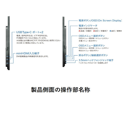インターフェイス:Type-C×2、miniHDMI×1、3.5mmイヤホンジャック×1、30W
