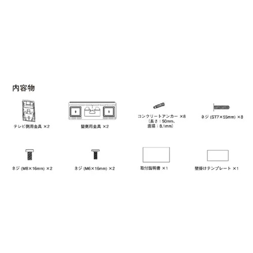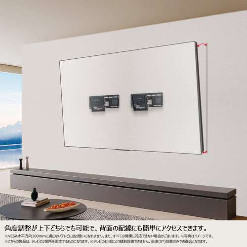 テレビ本体と壁の距離、テレビ本体の上下角度調整ができる金具が付属