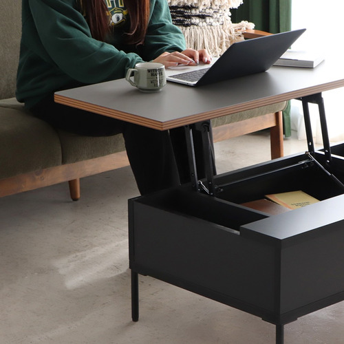 天板を持ち上げて高さを調整できるシンプル構造。余計な機能を省いて、直感的に使える1台です。