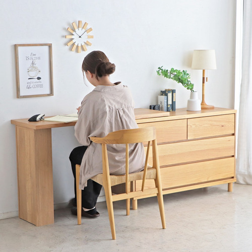 東馬(Tohma) ハウタ 120 伸長デスクチェスト 収納デスクセット 幅120×奥行40×高さ75cm ナチュラル