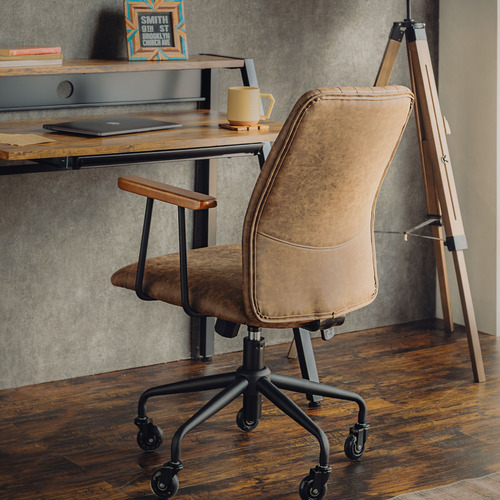 東馬(Tohma) TM レトラ デスクチェア オフィスチェア PUレザー 幅57.5×奥行58×高さ98.5cm ブラウン