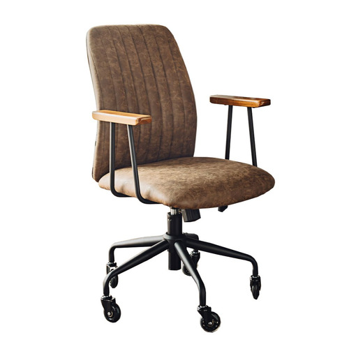 木製の肘置きとスチール脚を組み合わせたヴィンテージ調デザイン。見た目も機能も大人仕様です。