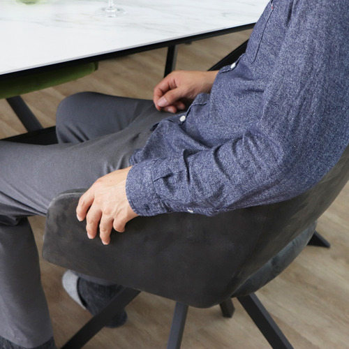 落ち着いた色合いでダイニングを引き立てます。スチール脚で安定感もばっちり。立ち座りもラクだから、幅広い世代に使いやすい一脚です。