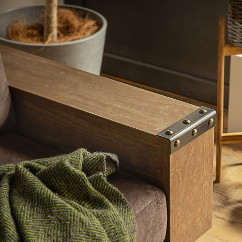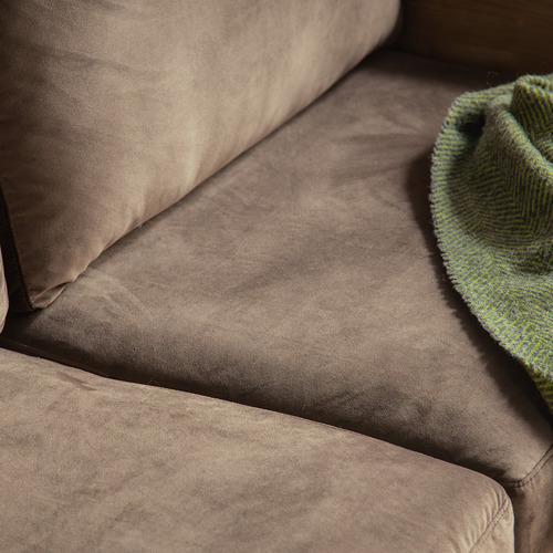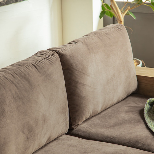 スエード調の生地がやわらかく、包み込まれるような座り心地。存在感あるフレームでリビングをぐっと落ち着いた雰囲気に。