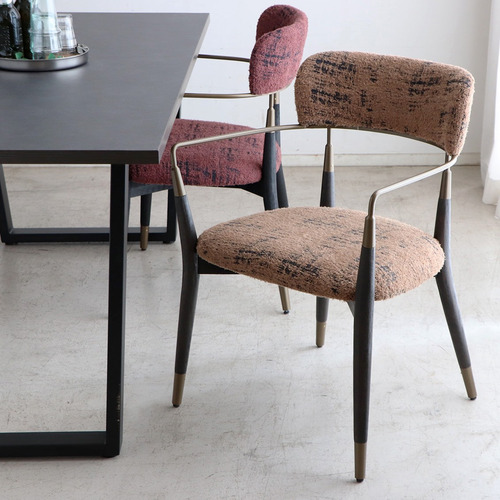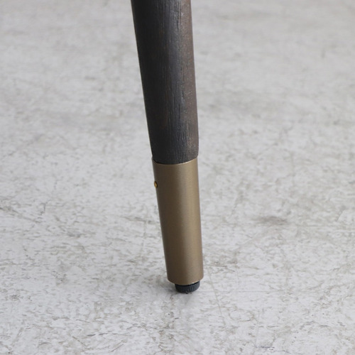 木脚とスチールを組み合わせたデザインに、さりげないゴールドのアクセント。ちょっと特別な気分にさせてくれるチェアです。