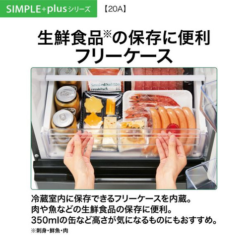 冷蔵室内にフリーケースを内蔵。お肉や魚などの生鮮食品の保存もおまかせ。