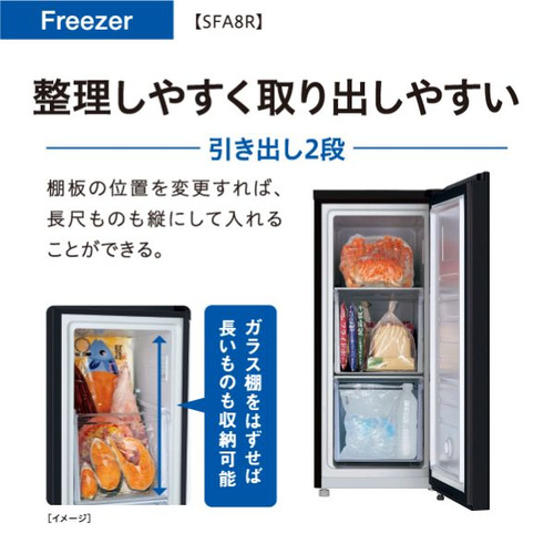 AQUA ファン式冷凍庫 76L 右開き 1ドア 幅40cm インバーター搭載 エネ静音 引き出し式バスケット AQF-SFA8R(K) ブラック系