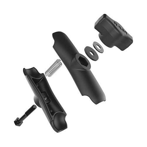 1インチボール対応の各種RAMマウントと組み合わせればあらゆる長さ、角度に調整可能。ボールに挟み込むだけの簡単着脱。