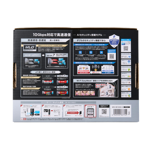 ●Wi-Fi 7対応でさらに高速な通信を手軽に実現。INTERNETポートは10Gbps対応で、普及が進む10G回線のメリットを最大限に活かします。通信エリアを広げるWi-Fi EasyMesh(TM)、家中まるごと安心のAIセキュリティ機能、F-Secure SENSE搭載。これからの高速通信サービスにも対応する、IPv6(IPoE)対応 Wi-Fi 10ギガビットルーターです。