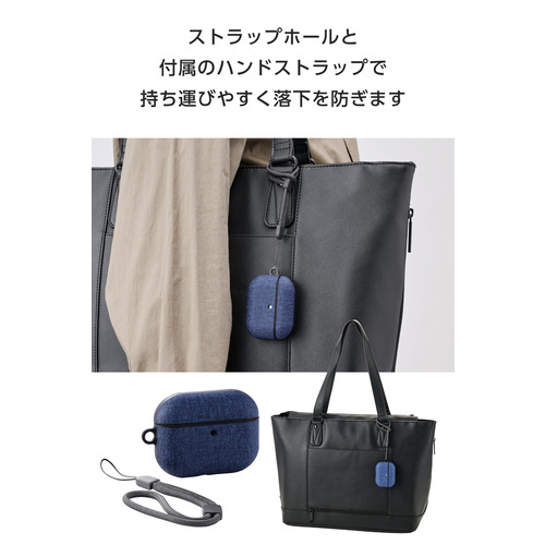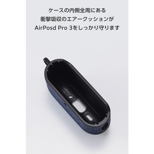 エレコム AVA-AP07CCNV AirPods Pro 3 ケース MagSafe対応 ファブリック調 TPU 耐衝撃 ストラップ付 落下防止 ネイビー