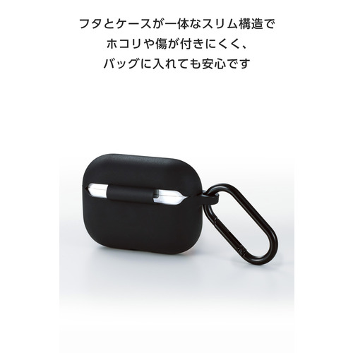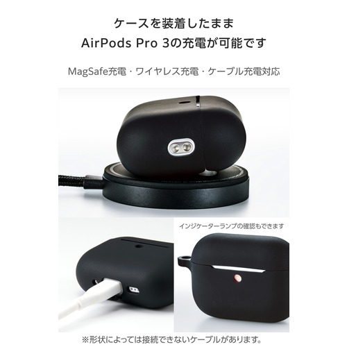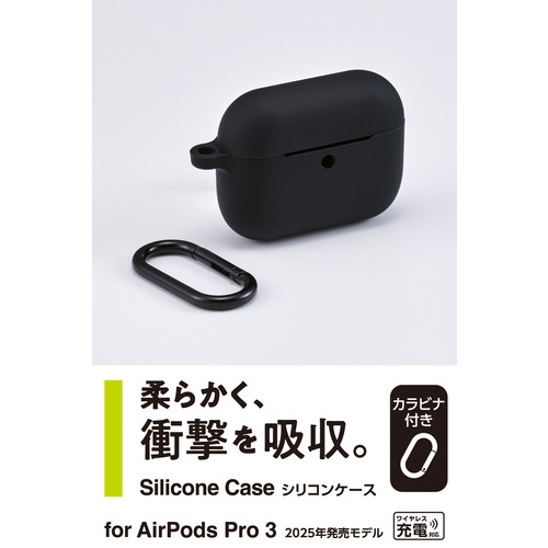 エレコム AVA-AP07SCBK AirPods Pro 3 ケース MagSafe対応 シリコン 耐衝撃 滑りにくい カラビナ付 落下防止 ブラック
