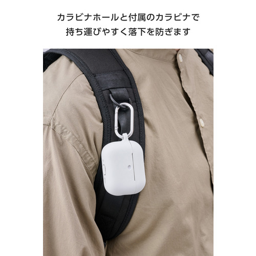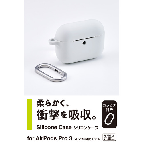 エレコム AVA-AP07SCGY AirPods Pro 3 ケース MagSafe対応 シリコン 耐衝撃 滑りにくい カラビナ付 落下防止 グレー