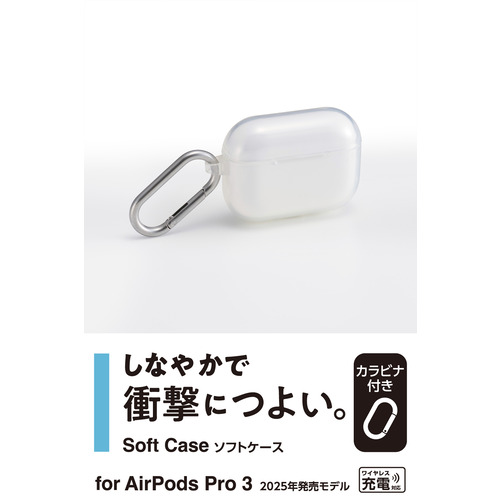 ●MagSafe充電に対応し、透明なケースが本体デザインを損なわず美しさを際立たせるAirPods Pro 3用ソフトケースです。