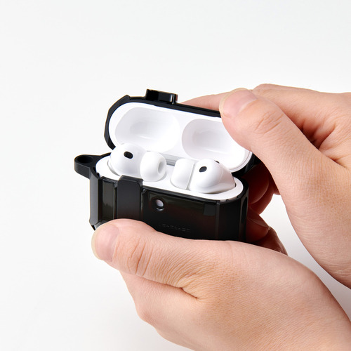 エレコム AVA-AP07ZEROLBK AirPods Pro 3 ケース MagSafe対応 ZEROSHOCK 3構造衝撃吸収 ロック機能 カラビナ付 落下防止 ブラック