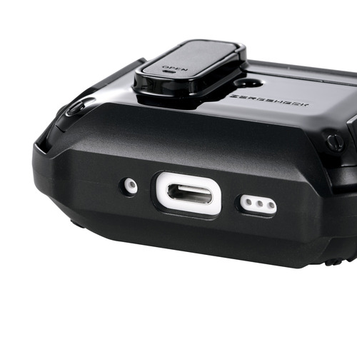 ●落下時の飛び出しを防ぐロック機能と、3つの衝撃吸収構造で衝撃から守るAirPods Pro 3用ZEROSHOCK Lockハイブリッドケースです。