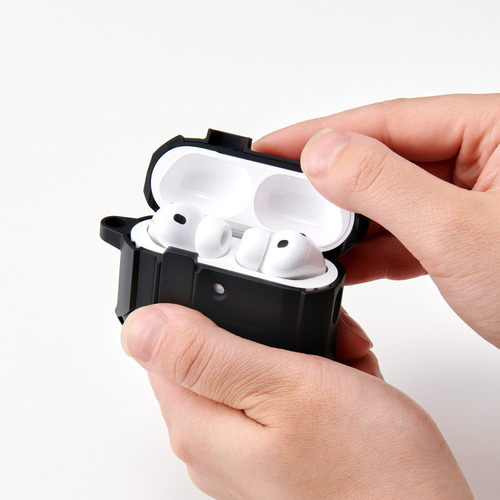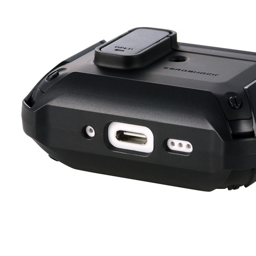●落下時の飛び出しを防ぐロック機能と、3つの衝撃吸収構造で衝撃から守るAirPods Pro 3用ZEROSHOCK Lockハイブリッドケースです。
