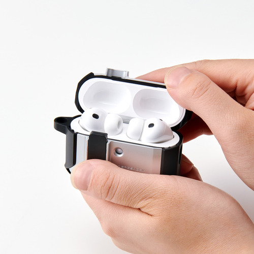 エレコム AVA-AP07ZEROLSV AirPods Pro 3 ケース MagSafe対応 ZEROSHOCK ロック機能 カラビナ付 シルバー