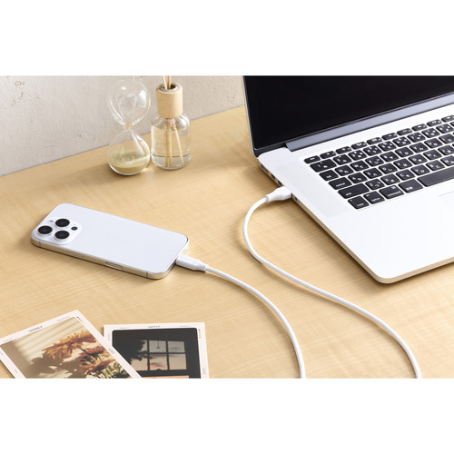 ●安心と使いやすさを両立!異物の挟み込みや水濡れなどの意図しない接続によるショートや発熱・発火を検知し、自動で電流を遮断するブレーカーを搭載したUSBケーブルです。なめらかな手触りで、やわらかく扱いやすいシリコン素材を採用しています。USB-Aポート搭載のパソコンやAC充電器と、USB Type-C(TM)ポート搭載のスマートフォンなどを接続して、充電やデータ転送ができます。