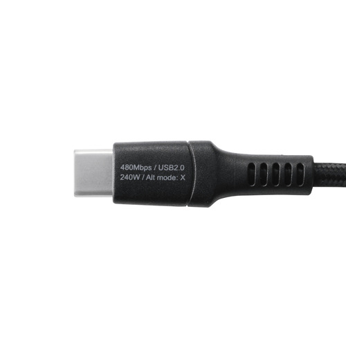 ●ナイロンメッシュ素材、高密度配線、ロングブッシュを採用した、断線に強い高耐久仕様のUSB Type-C(TM)ケーブルです。最大240Wのハイパワー充電で、スマートフォンやノートパソコンなどさまざまな機器への充電と、最大480Mbpsでのデータ転送が可能です。