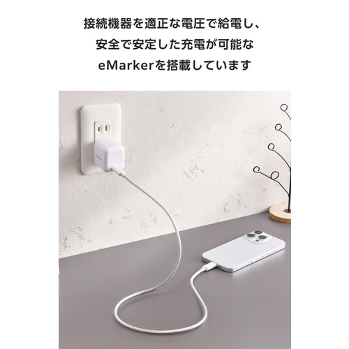 ●eMarkerを搭載し、充電時に接続する機器へ供給する電圧を自動で調整します。適正な電圧で給電できるため、安定した充電が可能です。
