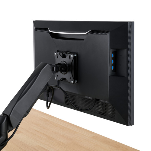 ●モニターの取り付けを、ラクに、スピーディーに。重いモニターを抱えながらの設置作業をなくし、挿し込むだけでモニターをアームやスタンドに設置できる、クイックリリース式VESAブラケットです。取り外しも簡単で、左右90度回転のモニターアームに対応し、モニターの機能をそのまま活かせます。