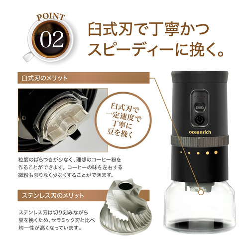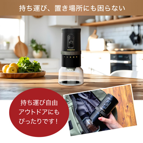 oceanrich UQ-ORG3CBK G3 電動コードレス コーヒーグラインダー 5段階粒度調整可能 USB充電式 ブラック