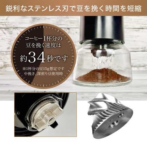 丸みのあるセラミック刃からシャープなステンレス刃に変更することで、コーヒー豆を挽く時間が短縮しました。忙しい時間でもコーヒーを楽しみたい方におすすめです。