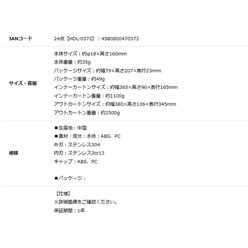 素材・成分:本体:ABS、PC 外刃:ステンレス304 内刃:ステンレス3cr13 キャップ:ABS、PC