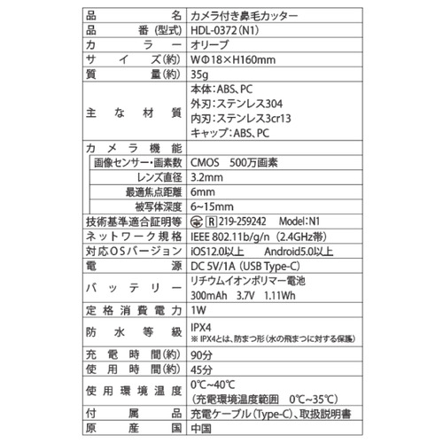 ヒロコーポレーション HDL-0372 カメラ付き鼻毛カッター カメラで確認しながらカット