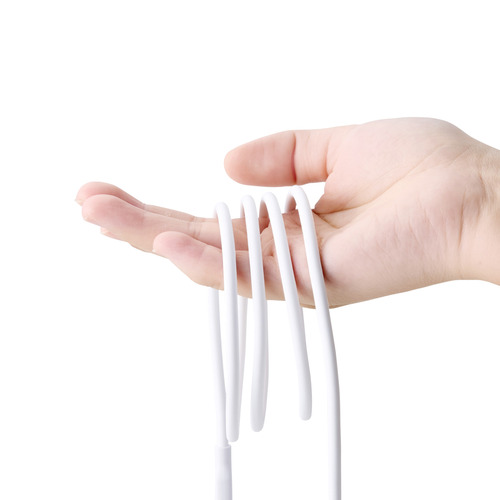 ●ケーブル外皮には、やわらかくなめらかな手触りのシリコン素材を採用しています。折り癖がつきにくく、高い耐久性を兼ね備えており、束ねても絡みにくく、取り回しやすいです。