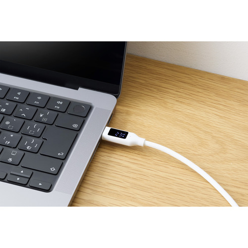●充電状況がひと目で分かる、電力ディスプレイ付きのUSB Type-C(TM)ケーブルです。充電電力値がリアルタイムで表示されるため、正しく充電できているか確認でき、安心です。ケーブル外皮にシリコン素材を採用し、やわらかく取り回しやすい、なめらかで手触りの良い風合いです。最大240WのUSB Power Delivery充電や、最大480Mbpsでのデータ転送が可能です。