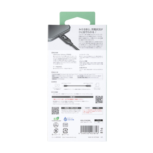 対応機種:USB Type-Cポート搭載のスマートフォン、パソコン、AC充電器、モバイルバッテリーなど