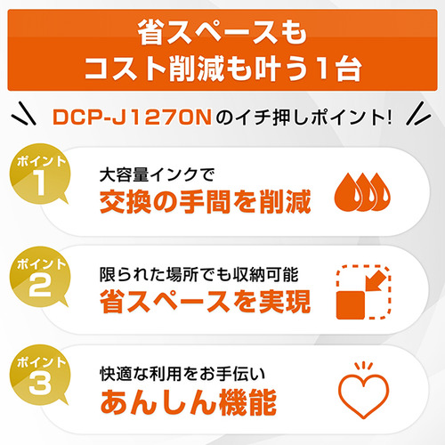 ブラザー DCP-J1270N プリンター A4大容量インクジェット複合機 自動両面印刷 Wi-Fi Windows Mac ChromeOS対応