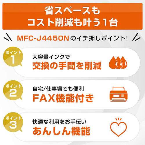 ブラザー MFC-J4450N プリンター A4大容量インクジェット複合機 FAX 自動両面印刷 Wi-Fi Windows Mac ChromeOS対応