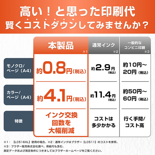 全色顔料インクのため、文字や画像をくっきりと印刷します。また、にじみにくいのも特徴です。