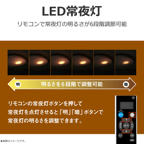 リモコンで常夜灯の明るさが6段階調節可能です。