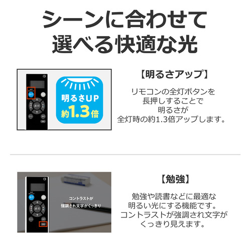 リモコンで常夜灯の明るさが6段階調節可能です。